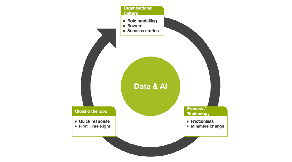 The accessibility of Vyn’s technology meets Ashish’s 3-part framework by improving organisation culture, while its easy-to-use nature makes the process frictionless and regular data analysis helps close the loop: