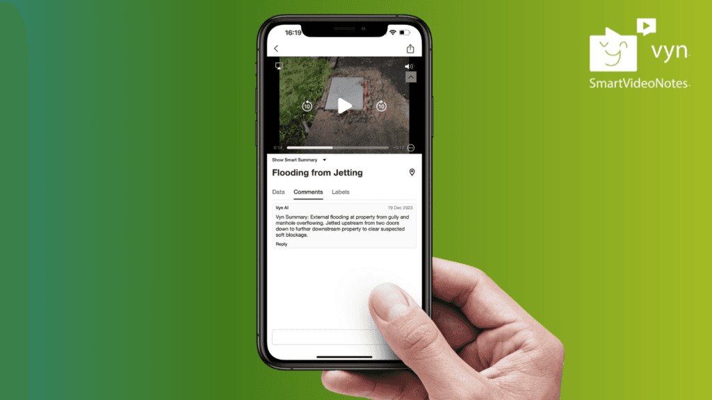 Vyntelligence offers a solution to mitigate flooding incidents during jetting operations. It involves a simple yet effective 60-second check, where teams record a video and talk through their training before carrying out operations. This step ensures that the team consciously considers and plans how to minimise risk. Vyn AI summarises the video, enabling management to understand operations carried out without having to watch the video.