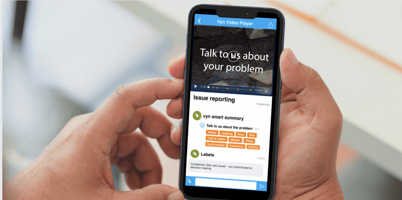 Customers can now report an issue, a water leak for example, to the service provider using a short, guided video captured on any mobile device without the need to download an app. Vyn’s AI-powered platform automatically labels the short video and integrates it into the customer service and planning workflows.